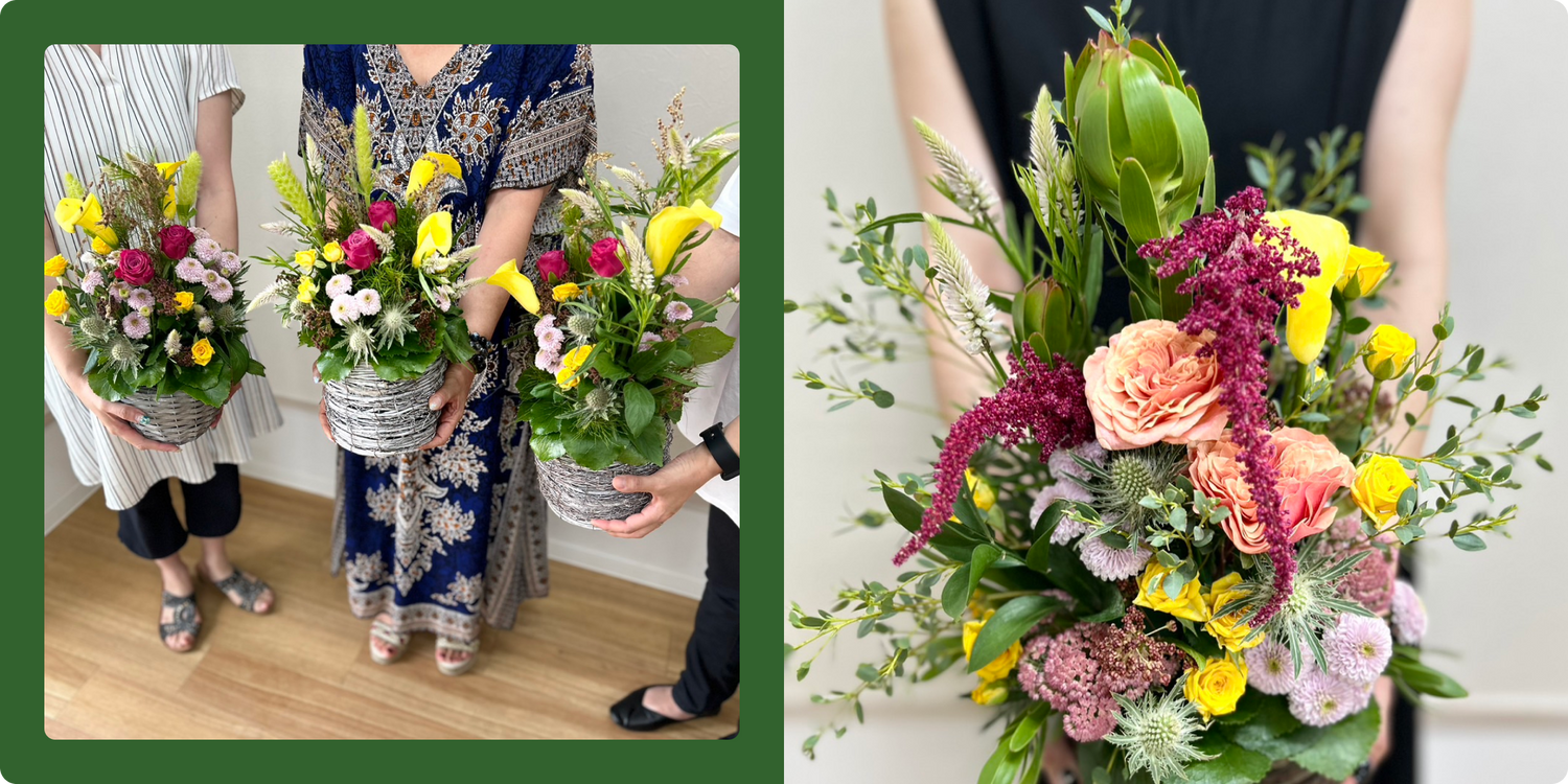 イベントに合わせたアレンジメントや基本スタイルが学べる教室です。どなたでもご参加いただけます。